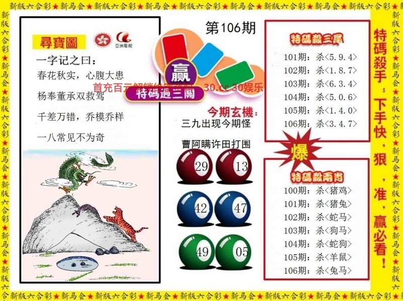 106期:九肖[蛇鸡兔羊牛龙马虎]开:猪43