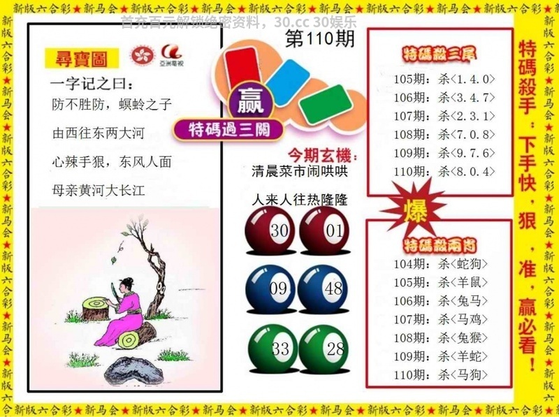 110期:九肖[牛猴马猪虎龙羊鸡]开:狗20